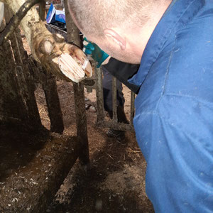 Training of professional cattle hoof trimmers.