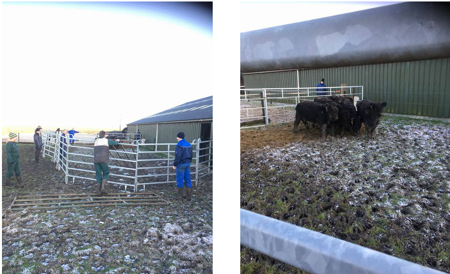 After about 1.5 hours, all the Galloway cattle were quietly standing in the barn.